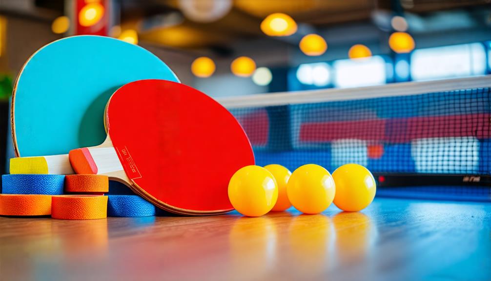 When setting up a ping pong area, lighting and fixtures play an indispensable role in enhancing gameplay. A minimum ceiling height of 10 feet is recommended to guarantee that the ball moves unobstructed during rallies. To achieve peak lighting, place fixtures at least 3 feet above the table. This height prevents interference with gameplay and reduces the risk of damage to the fixtures.
