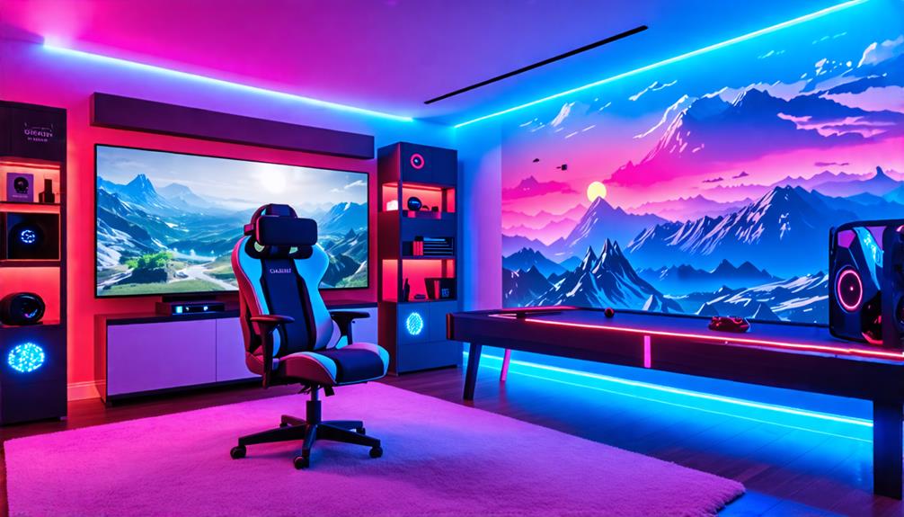 Enhance the ambiance of your game room with strategic lighting that immerses players in your tabletop RPG world. Utilize mood lighting options like LED strips or smart bulbs, which can change colors to match different in-game scenarios. These techniques elevate the immersive experience, making players feel like part of the action.